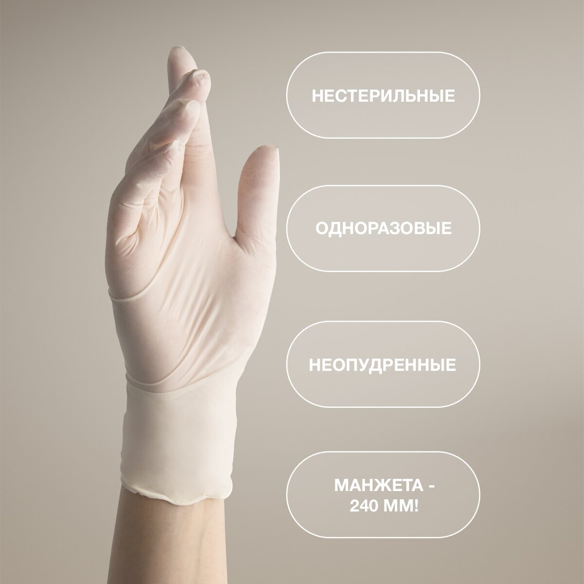 Перчатки латексные удлиненные 30 см Kimtech PFE-Xtra Gloves, цвет: бежевый, размер M, 50 шт. (25 пар)