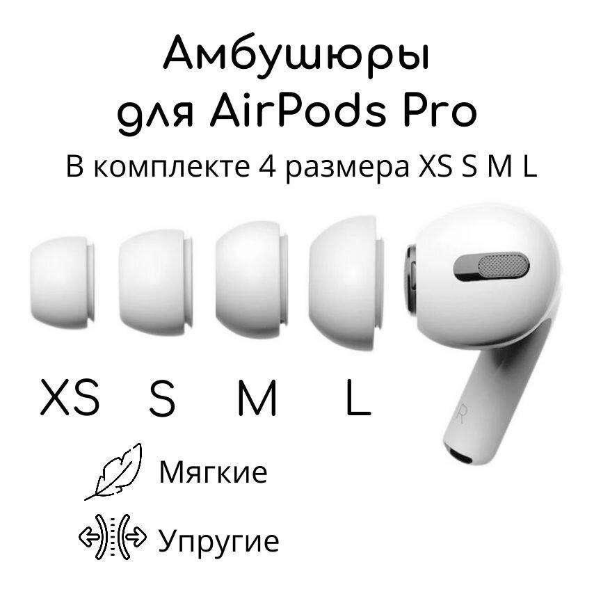 Амбушюры для наушников AirPods Pro 1, 2 (4 размера XS, S, M, L) Вкладыши для Эир подс, Накладки на AirPods информация:
