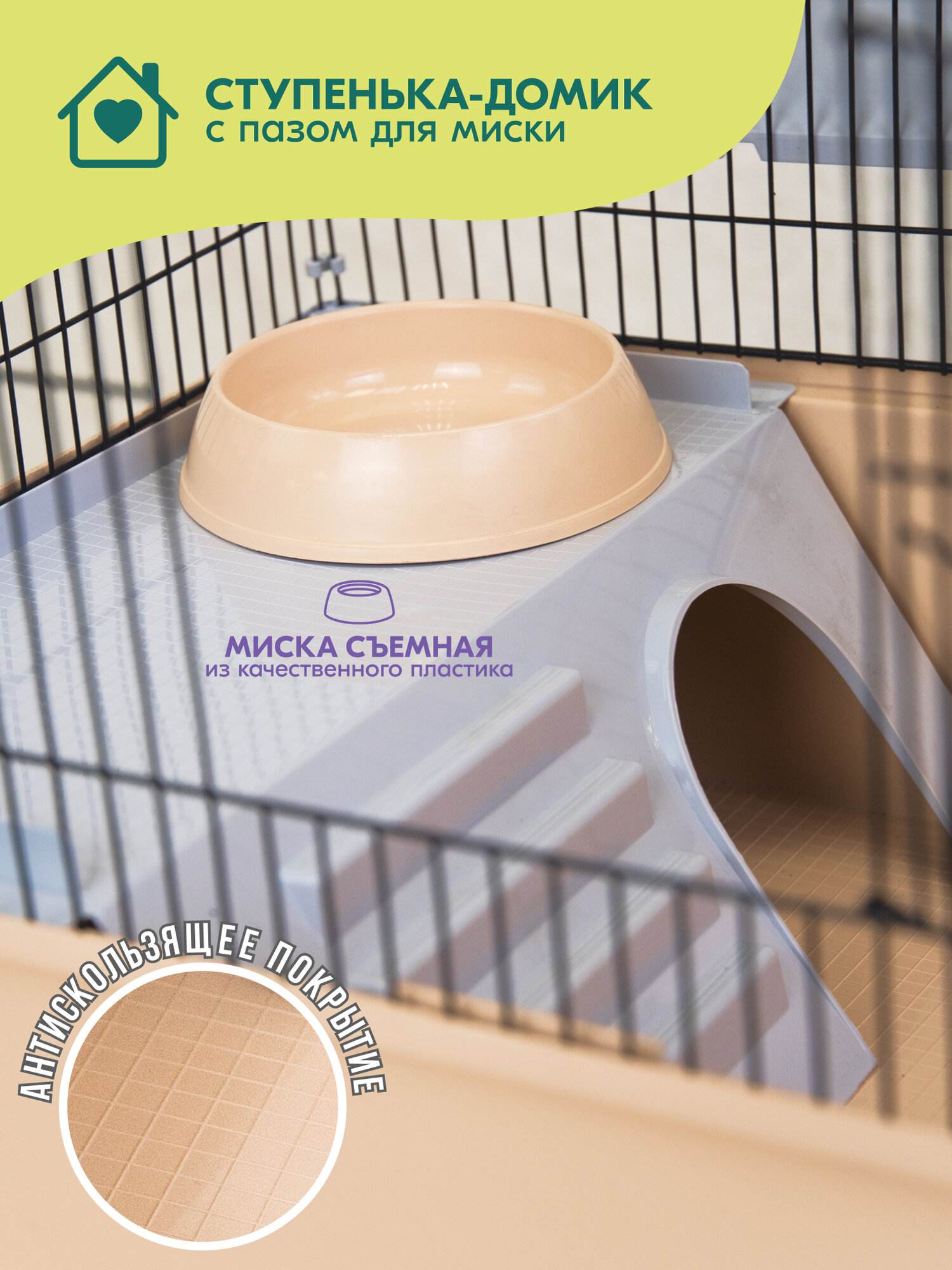 Дарэлл ECO Клетка для грызунов ХОМА-3, не разборная 3 этажа шаг прута 8мм, бежевая