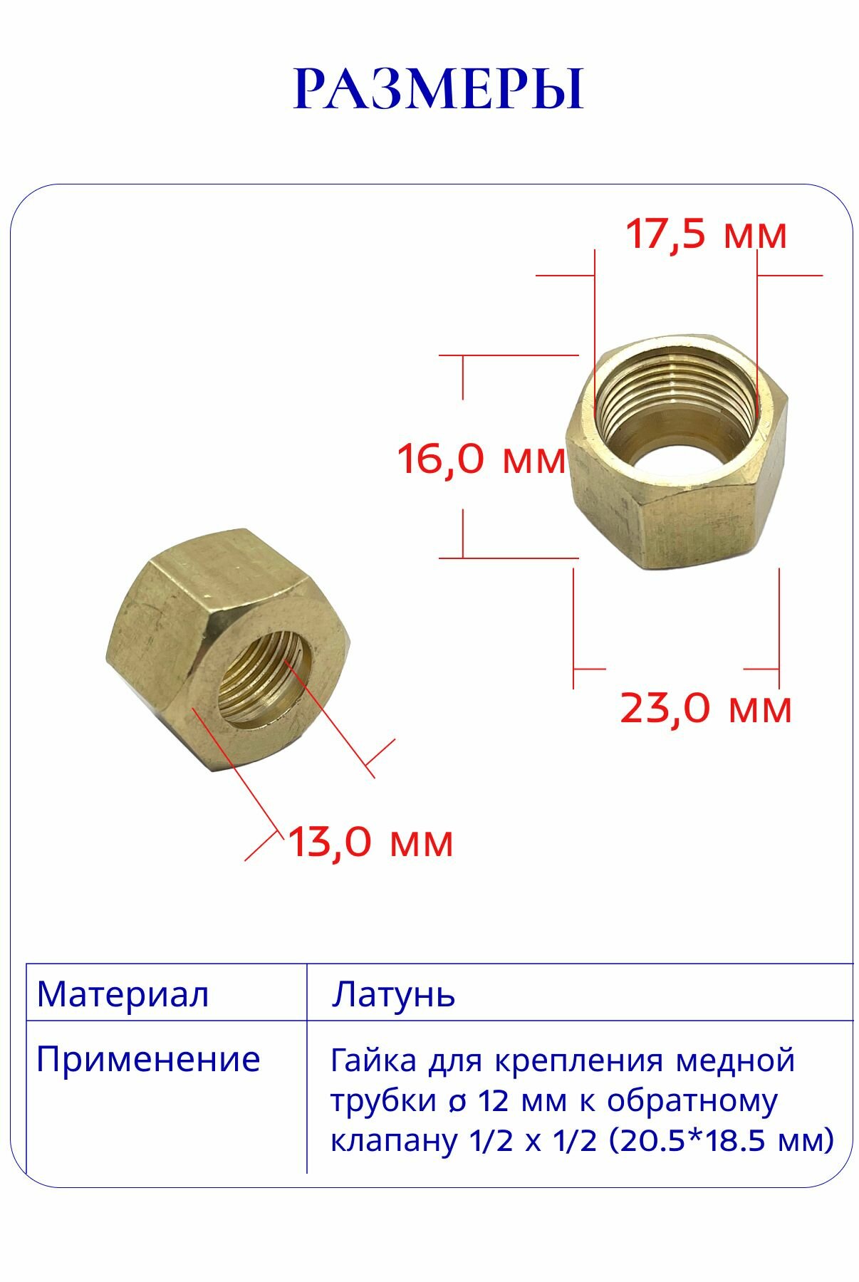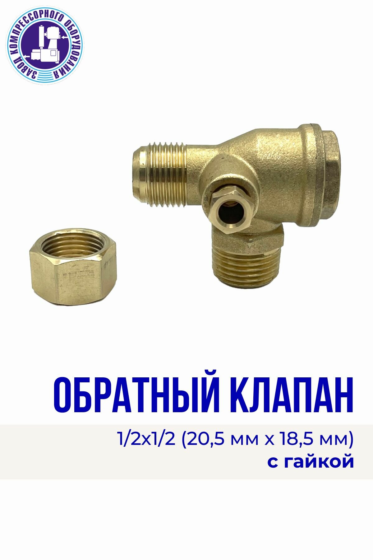 Обратный клапан 1/2х1/2 (20,5мм. х 18,5мм.) в комплекте с гайкой для воздушного компрессора, ЭнергоРесурс информация: