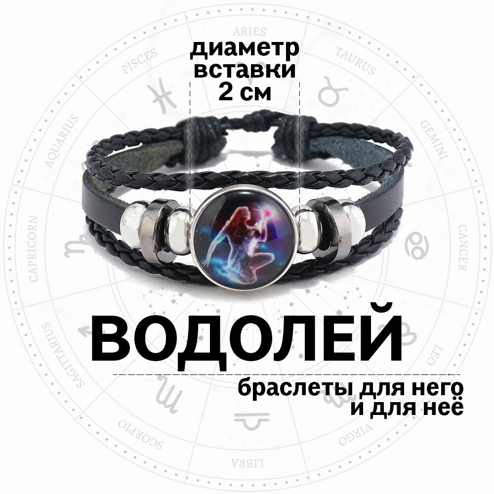 Браслет Croco Gifts знак зодиака "Водолей", кожаный, с регулировкой размера 278 ₽