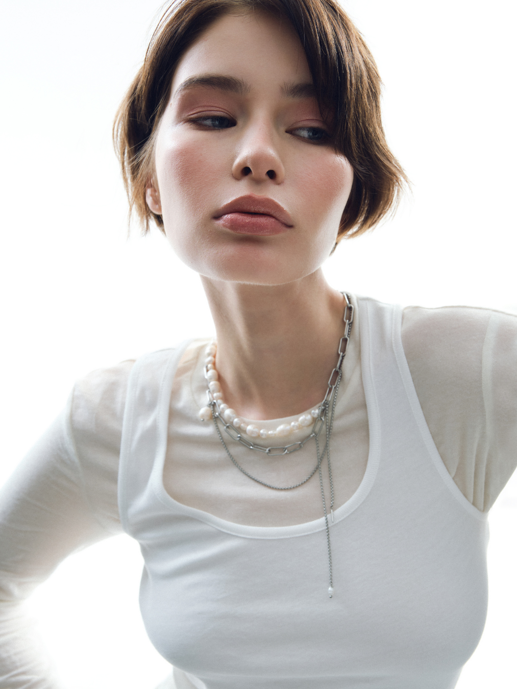 10 цен на Колье РЕСУРС, жемчуг культивированный, длина 39 см, белый/серый