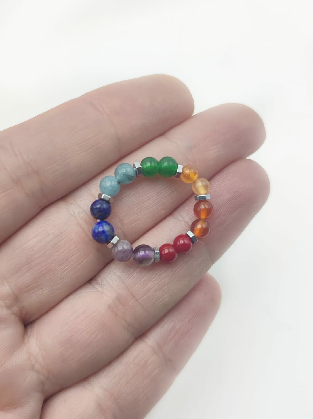 Кольцо Семь чакр из натуральных камней на резинке 22 размер Hrustalek 450 ₽