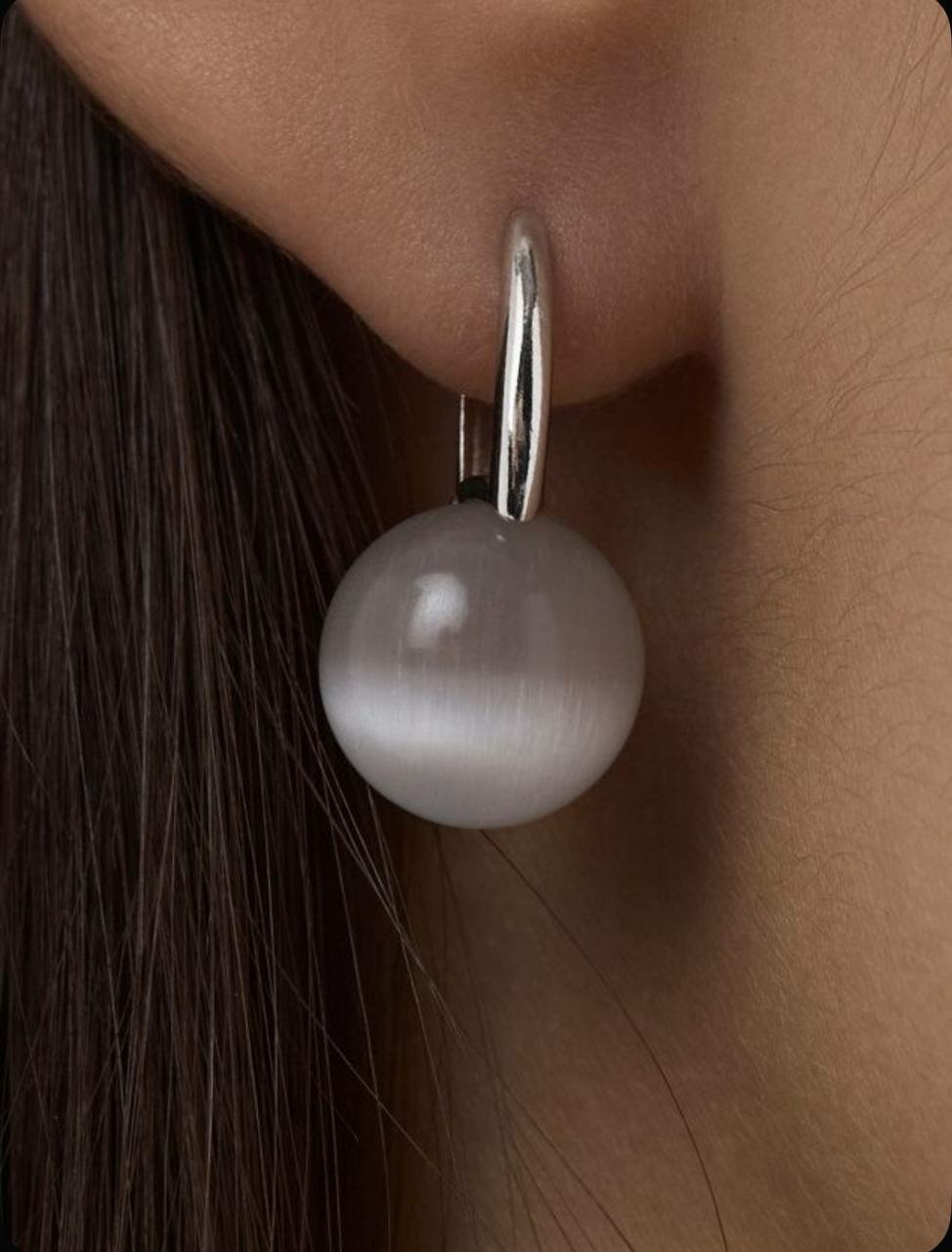 Серьги с серым кошачим глазом "Гири" серебро 925 Аргентум 1 210 ₽
