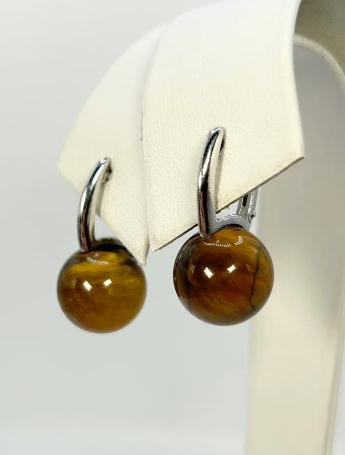 Серьги с тигровым глазом "Гири" серебро 925 Argentum 1 000 ₽