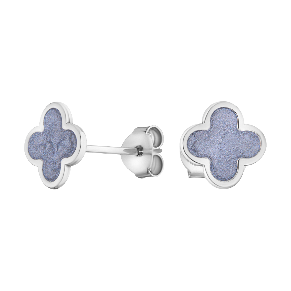 Серьги-пусеты серебряные 925 пробы Клевер, гвоздики Четырехлистник, ср.вес изделия 0,9 гр., арт. 2027944/91СТГ