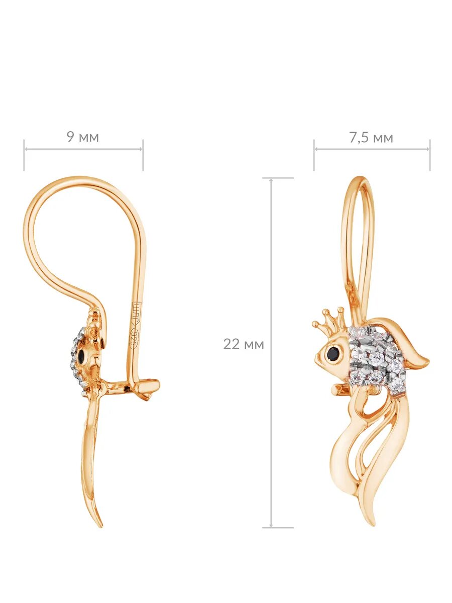 Серьги детские серебряные 925 пробы с фианитами Рыбки, ср.вес изделия 0,93 гр, арт. 2829086/9. 852 ₽