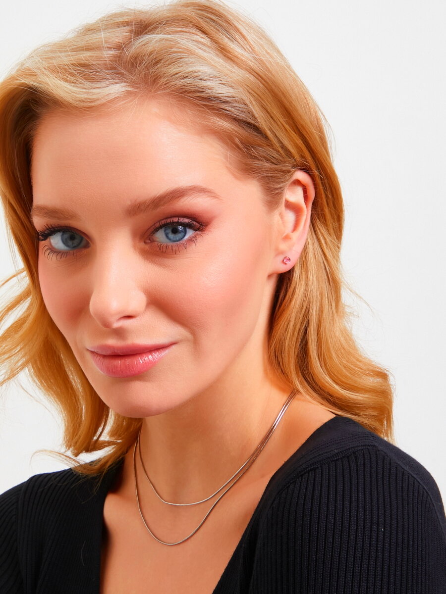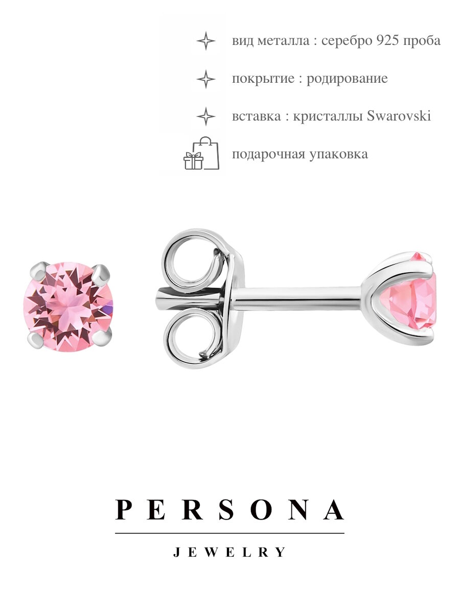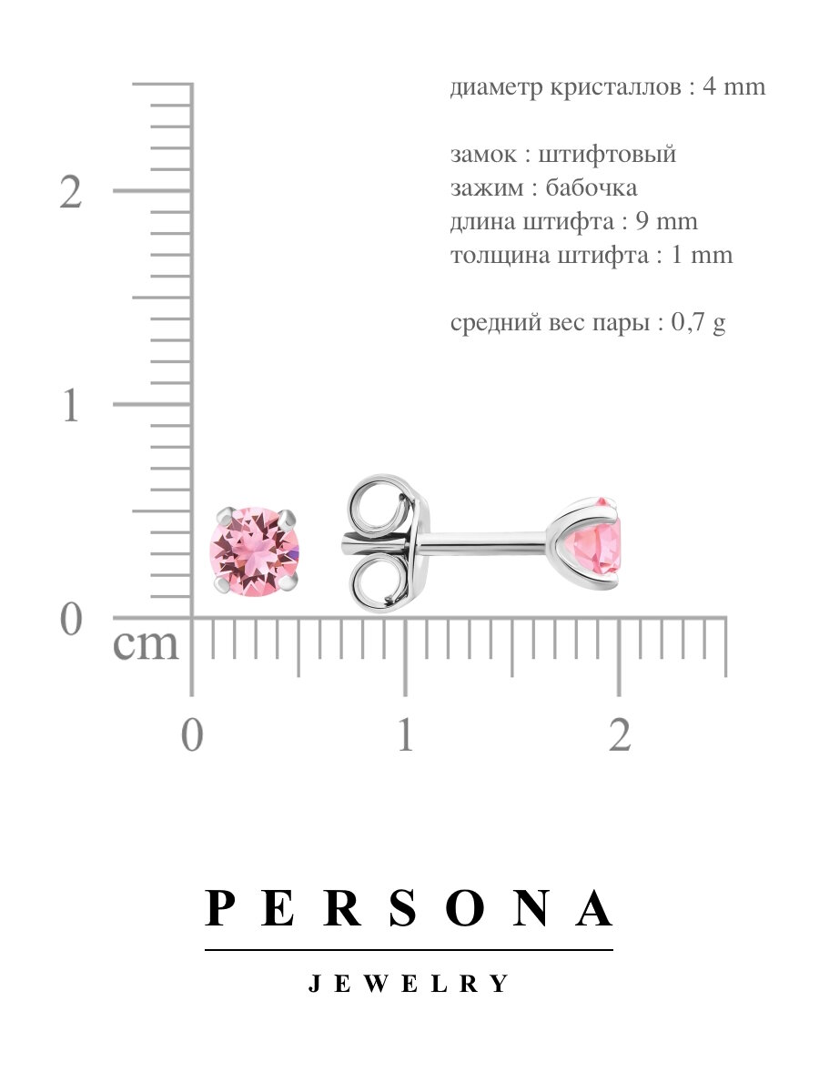 Отзывы на Серьги пусеты ПЕРСОНА, серебро, 925 проба, родирование, кристаллы Swarovski, размер 4 мм, длина 1.3 см, , розовый