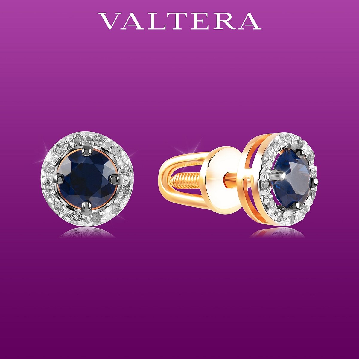 Серьги VALTERA / пусеты / гвоздики / серьги золото 585 / серьги с бриллиантами / серьги с сапфирами /произведено в России / 094526 20 000 ₽