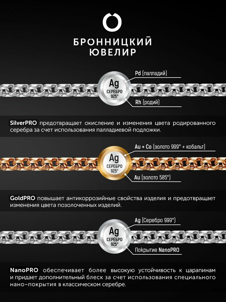 Отзывы на Цепь Бронницкий Ювелир, серебро, 925 проба, родирование, длина 70 см, средний вес 5.35 г, , серебристый
