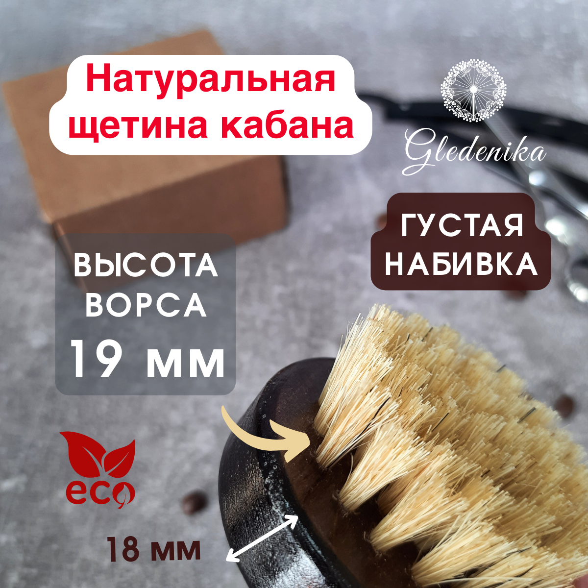 Gledenika/Щётка для бороды и усов, лица, волос, из натуральной щетины кабана, массажная , средней жесткости информация: