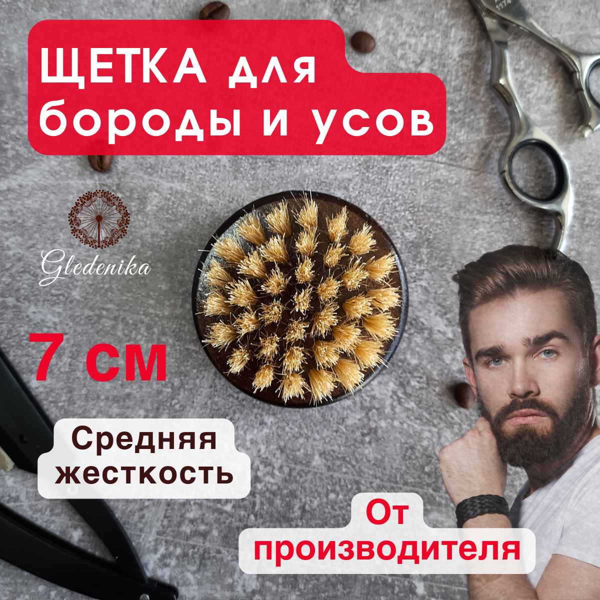 Отзывы на Gledenika/Щётка для бороды и усов, лица, волос, из натуральной щетины кабана, массажная , средней жесткости
