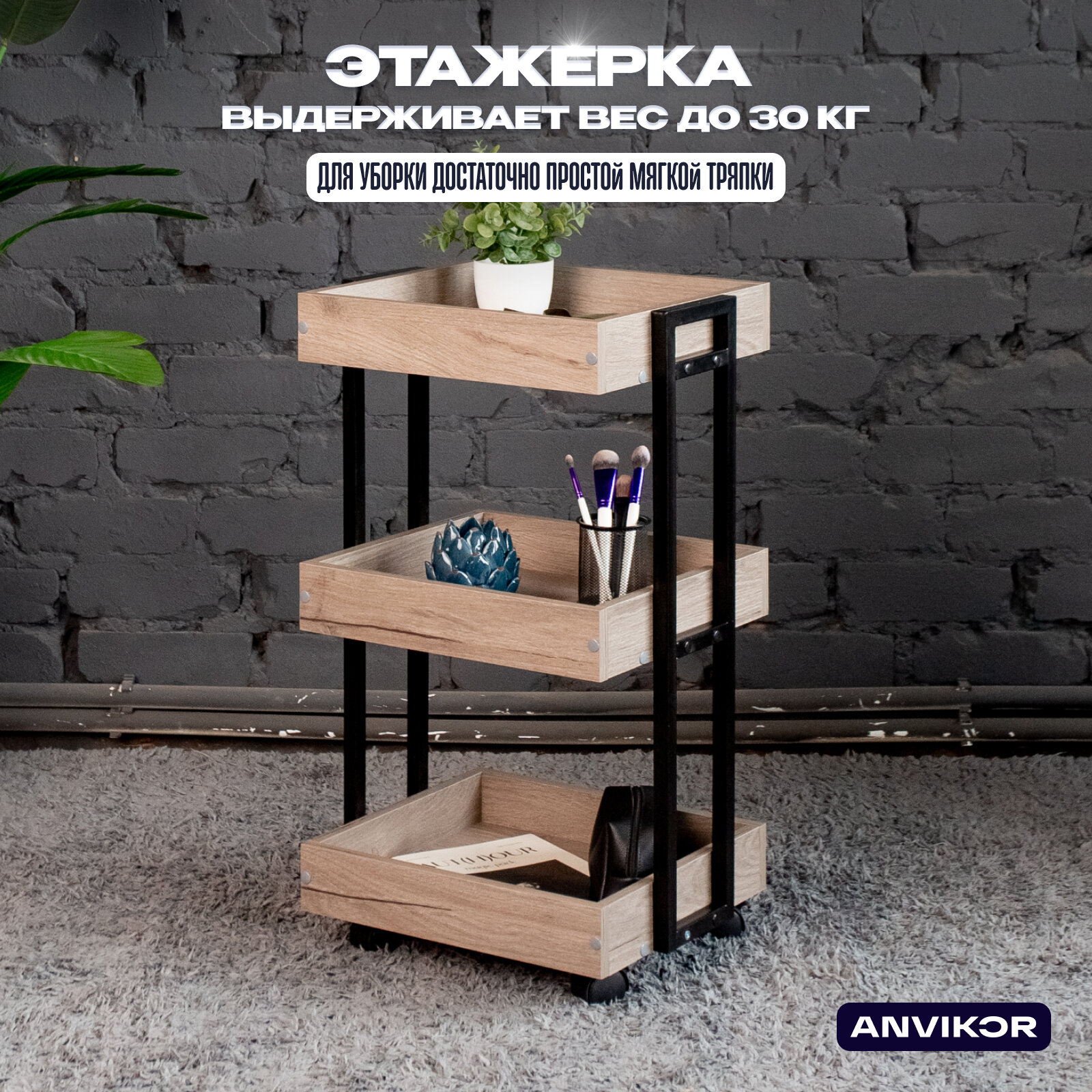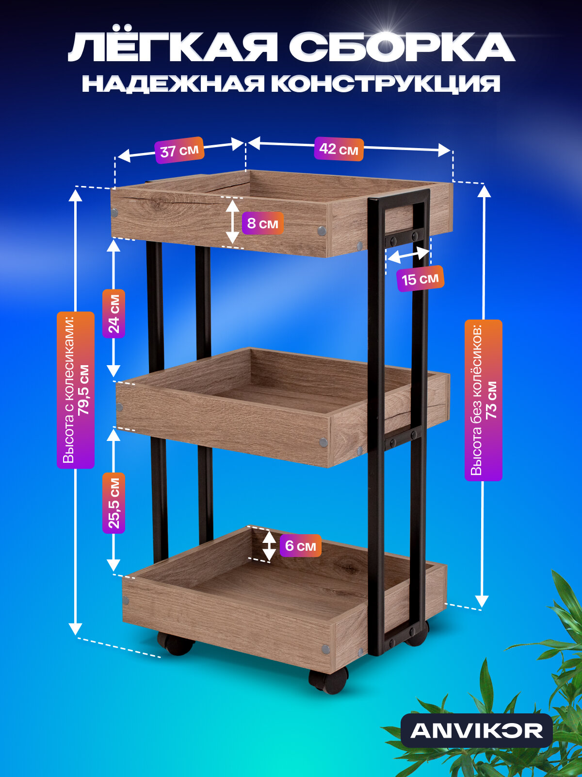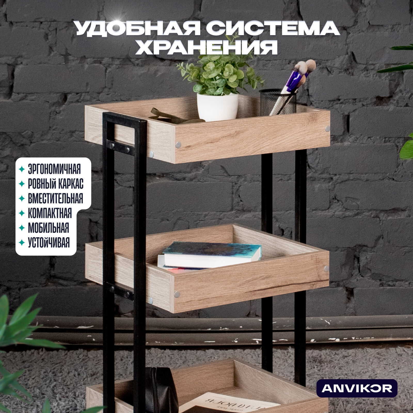 10 цен на Тележка косметологическая трехъярусная с бортиками на колесиках лофт Ангара серая
