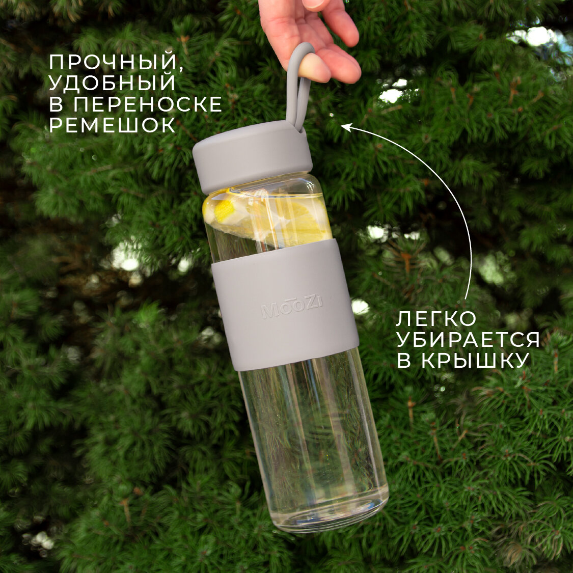 Стеклянная бутылка MOOZI, для воды, 520мл, серая, с герметичной крышкой 1 250 ₽