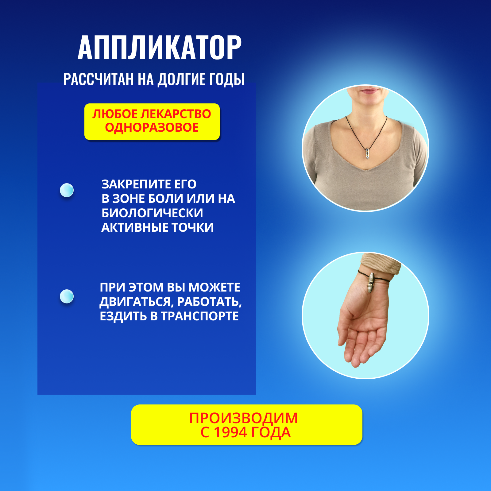 | Дополнительная информация | среднее значение магнитной индукции на поверхности рабочей части аппликатора, 3,6-12 мТл . Зарегистрирован в Росздравнадзоре |