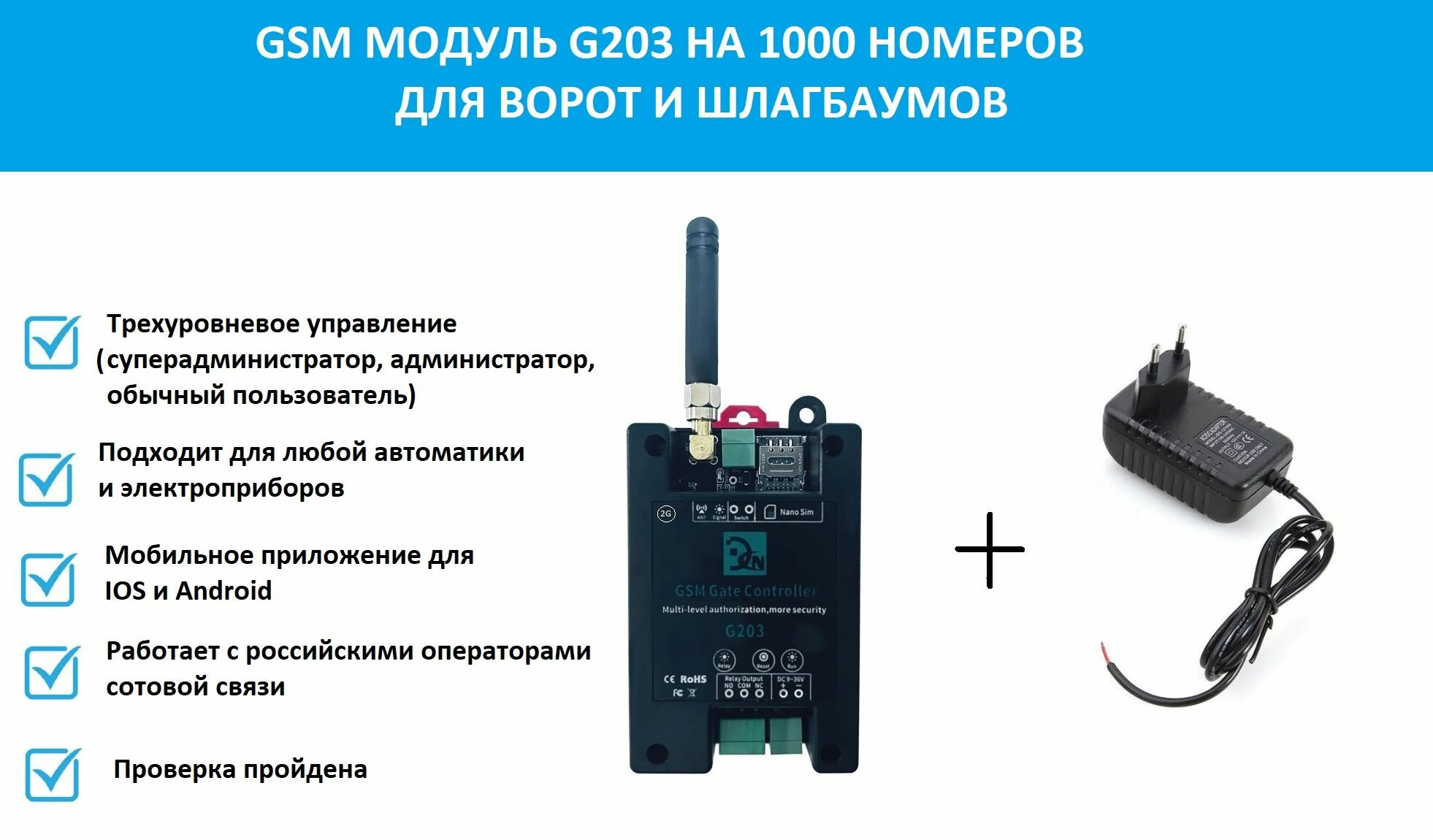 Отзывы на GSM модуль для ворот и шлагбаумов G203 Gsm реле на 1000 абонентов + блок управления в розетку 12в 1а