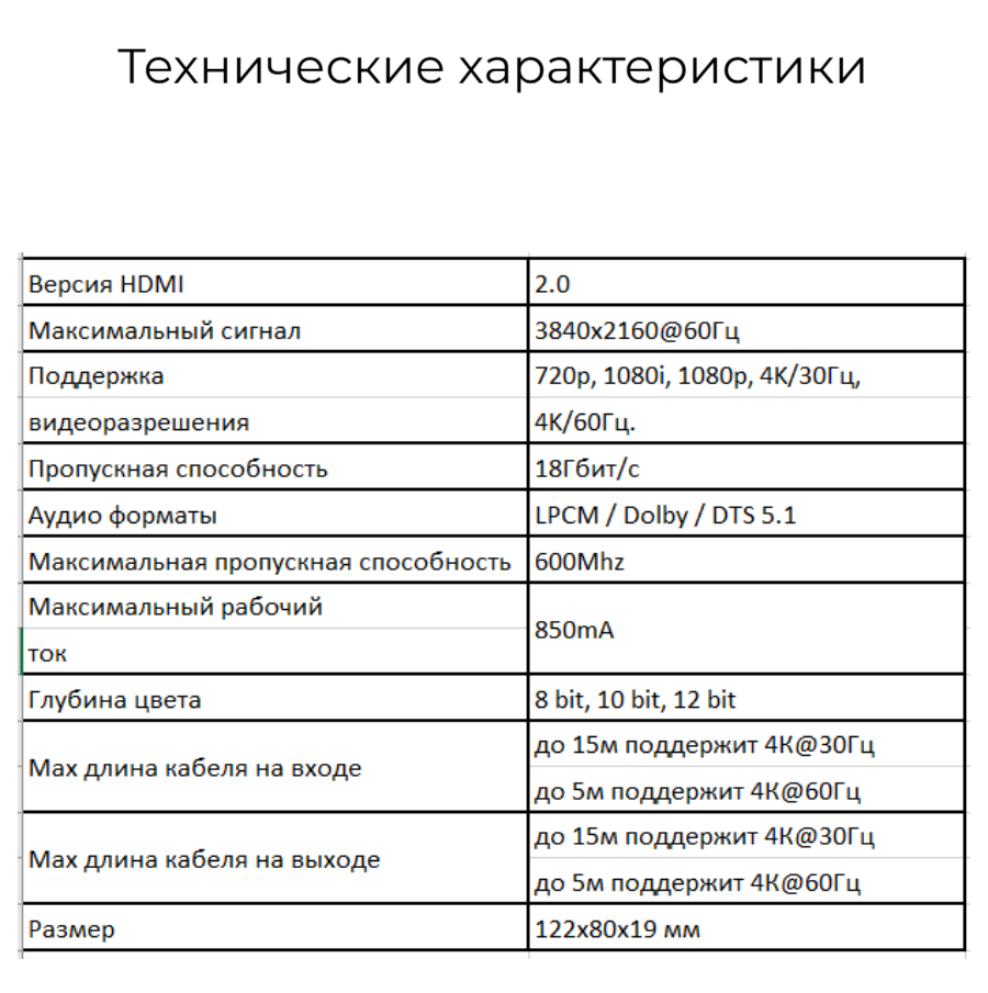 | Подключение | Вход HDMI x 4 / Выход HDMI / Выход IR mini jack 3.5 мм x 2 |