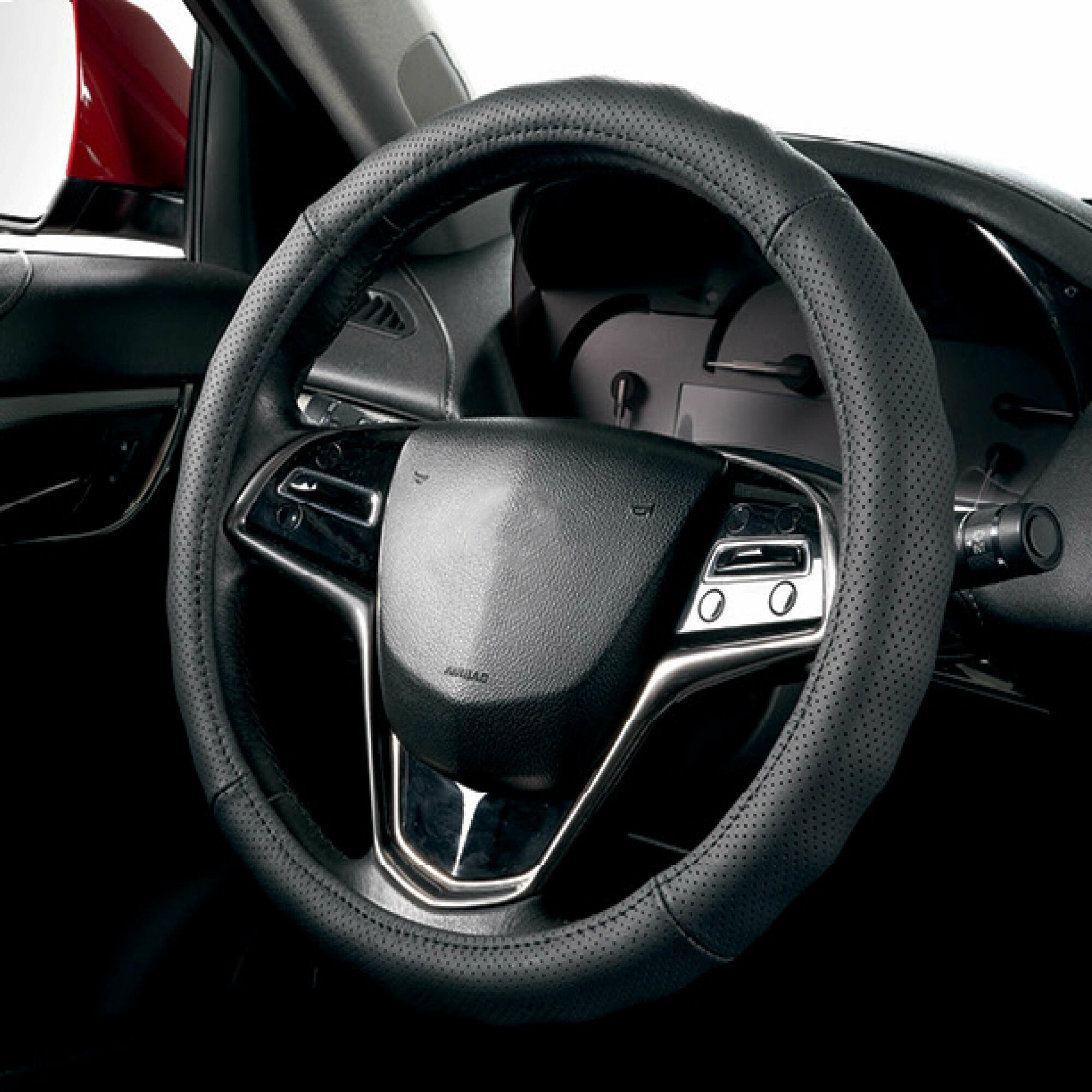 Оплетка на руль Хендай Солярис (2010 - 2014) седан / Hyundai Solaris, Экокожа, (накидка / чехол на руль) Черный и красный кант