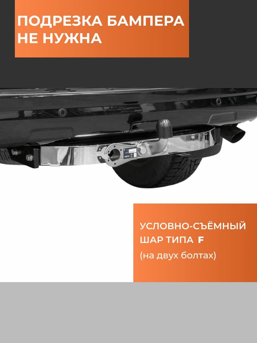 Автомобильный буксирный фаркоп на Toyota Land Cruiser 200 (кроме Executive, TRD) с 2007 г. в. со съемным шаром тип F, аксессуарами и сертификатом для авто