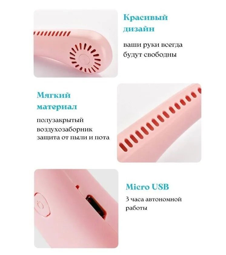 Портативный вентилятор на шею,Подвесной вентилятор, Портативный мини-вентилятор для спорта, безлопастной подвесной шейный вентилятор с USB-зарядкой,розовый 1 520 ₽