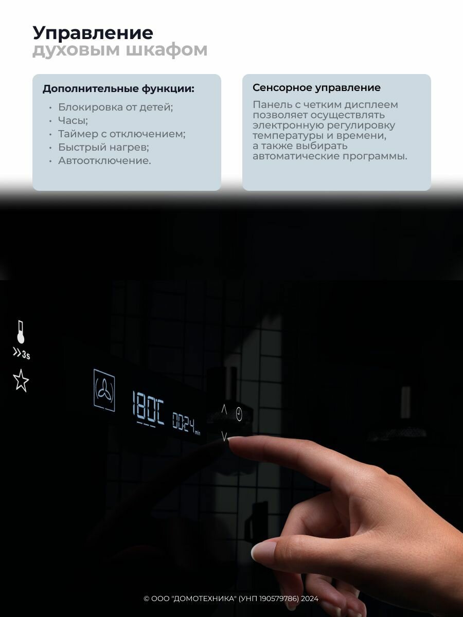 | Особенности конструкции | дисплей / подсветка камеры / телескопические направляющие / термощуп / часы / эмаль легкой чистки |