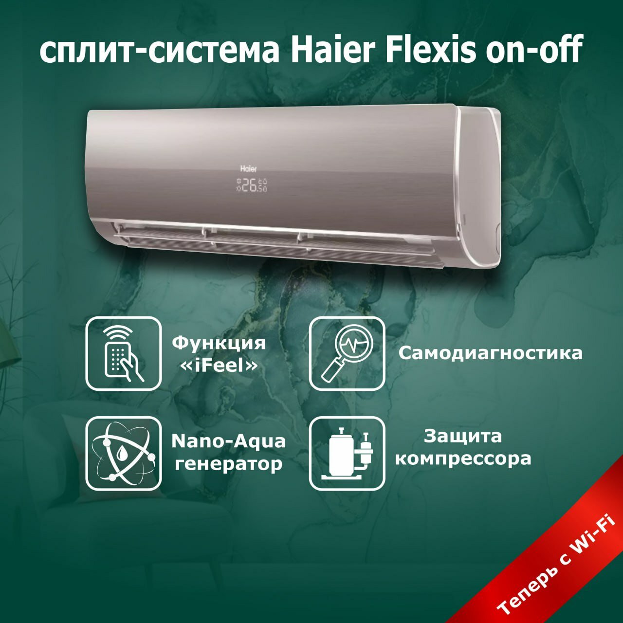 Сплит-система Haier Flexis On-Off HSU-12HFF103/R3-G / HSU-12HUF103/R3 на 35 квадратных метров