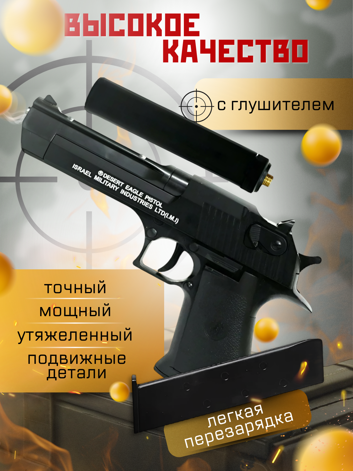 Отзывы на Пистолет металлический детский с глушителем Desert Eagle "Черный орел" C20+ (500 пулек в комплекте)