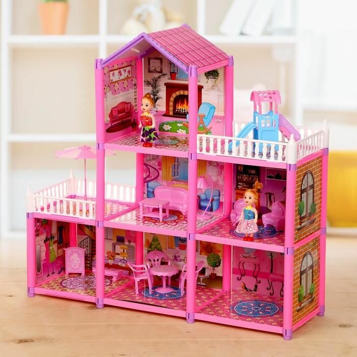Кукольный домик для девочек КНР "Коттедж" 3 этажа, с куклами, с аксессуарами, для кукол до 10 см (DSJ588-2) информация: