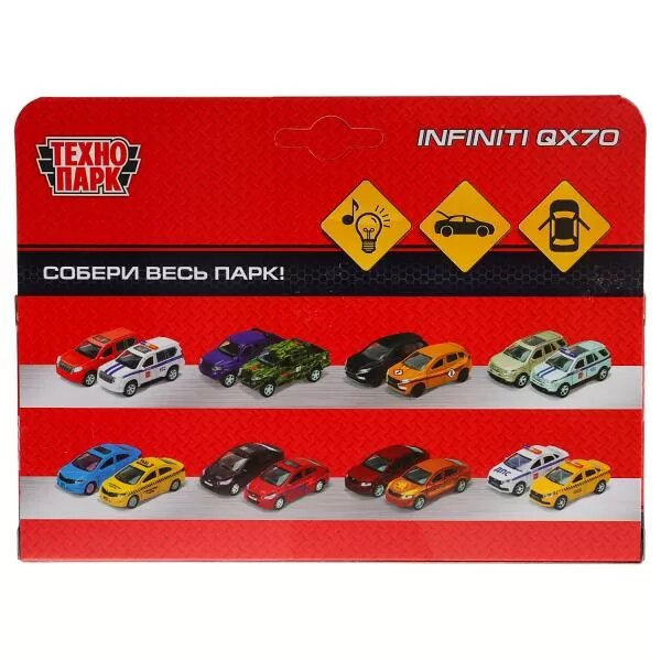 10 цен на Машина металл свет-звук INFINITI QX70 спорт длина 12 см, двер, баг, ин, кор. Технопарк