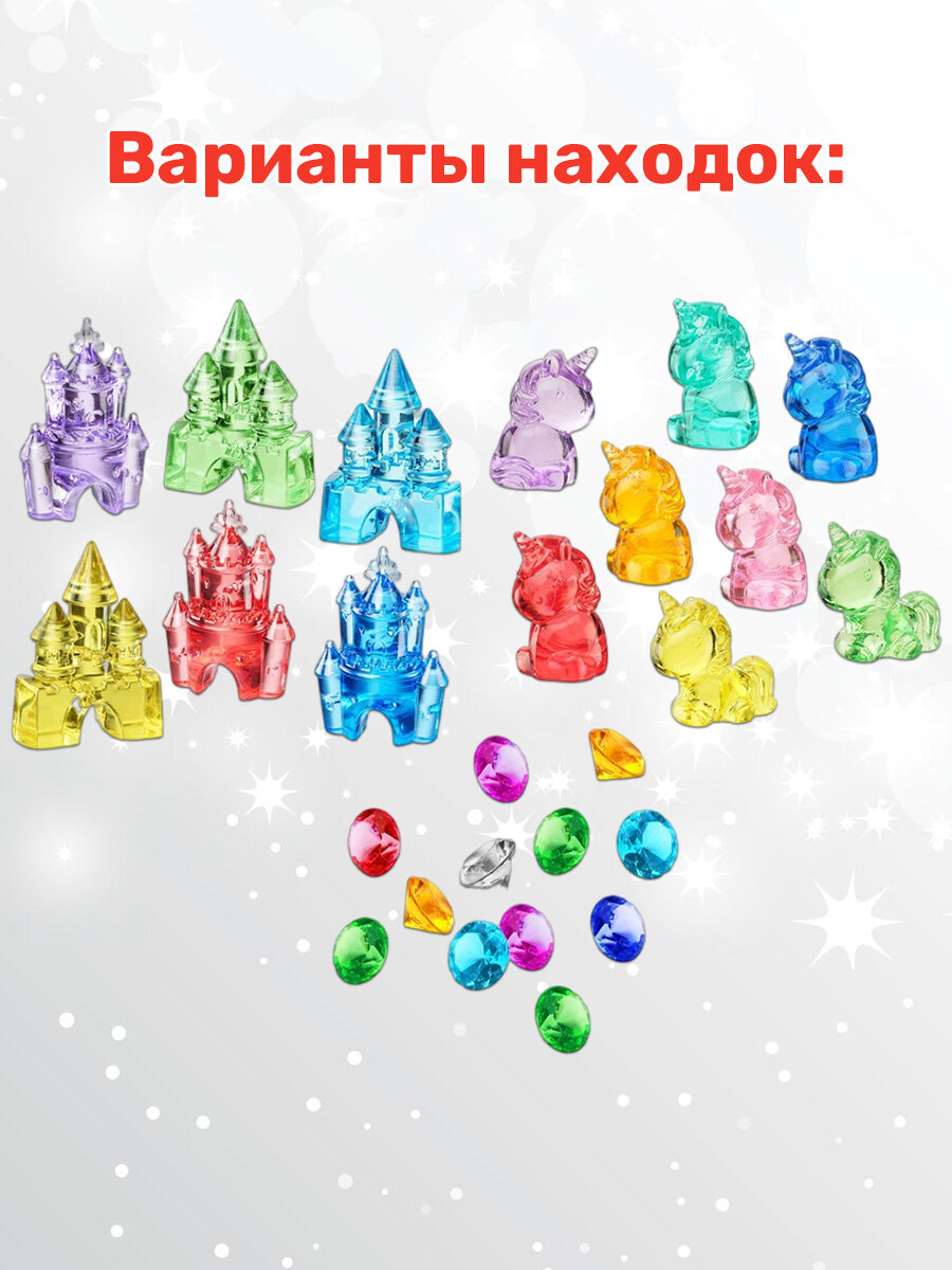 | Комплектация | деревянный молоточек, деревянный стек для дробления, окаменелый грунт, артефакты (россыпь разноцветных находок из пластика), мешочек для находок |