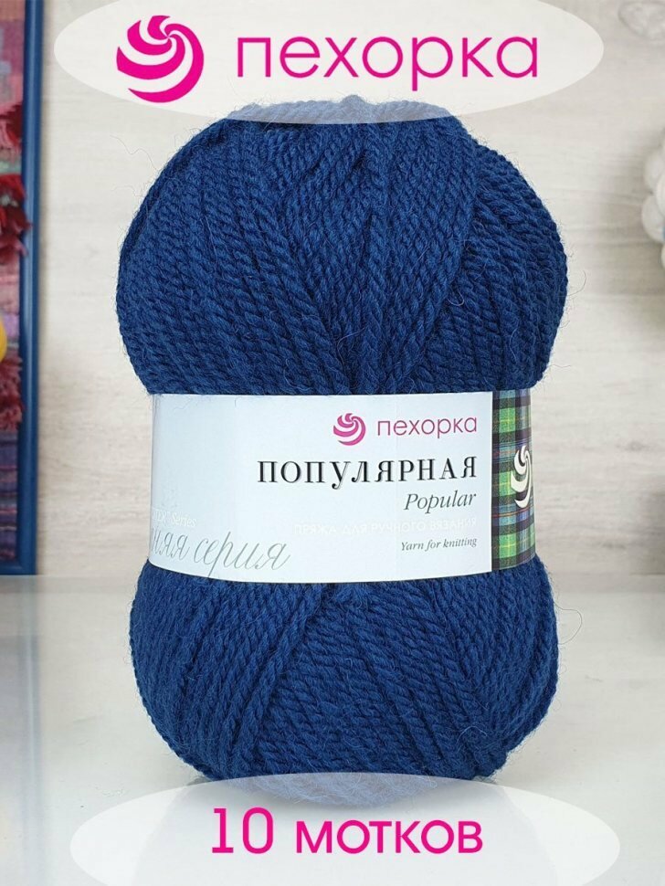 Пряжа Популярная (Пехорка), Ультрамарин - 491, 50% шерсть, 45% акрил, 5% акрил высокообъёмный, 10 мотков, 100 г, 133 м.