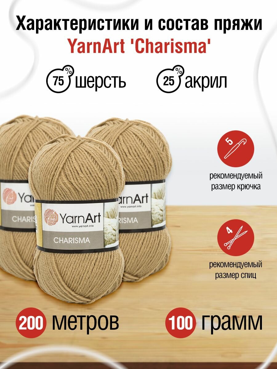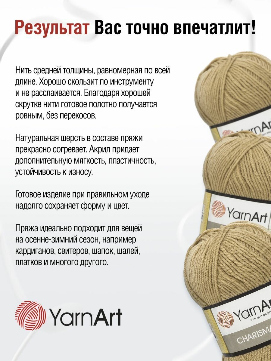 Пряжа для вязания YarnArt 'Charisma' 100г, 200м (75% шерсть, 25% акрил) (511 бежевый), 5 мотков информация:
