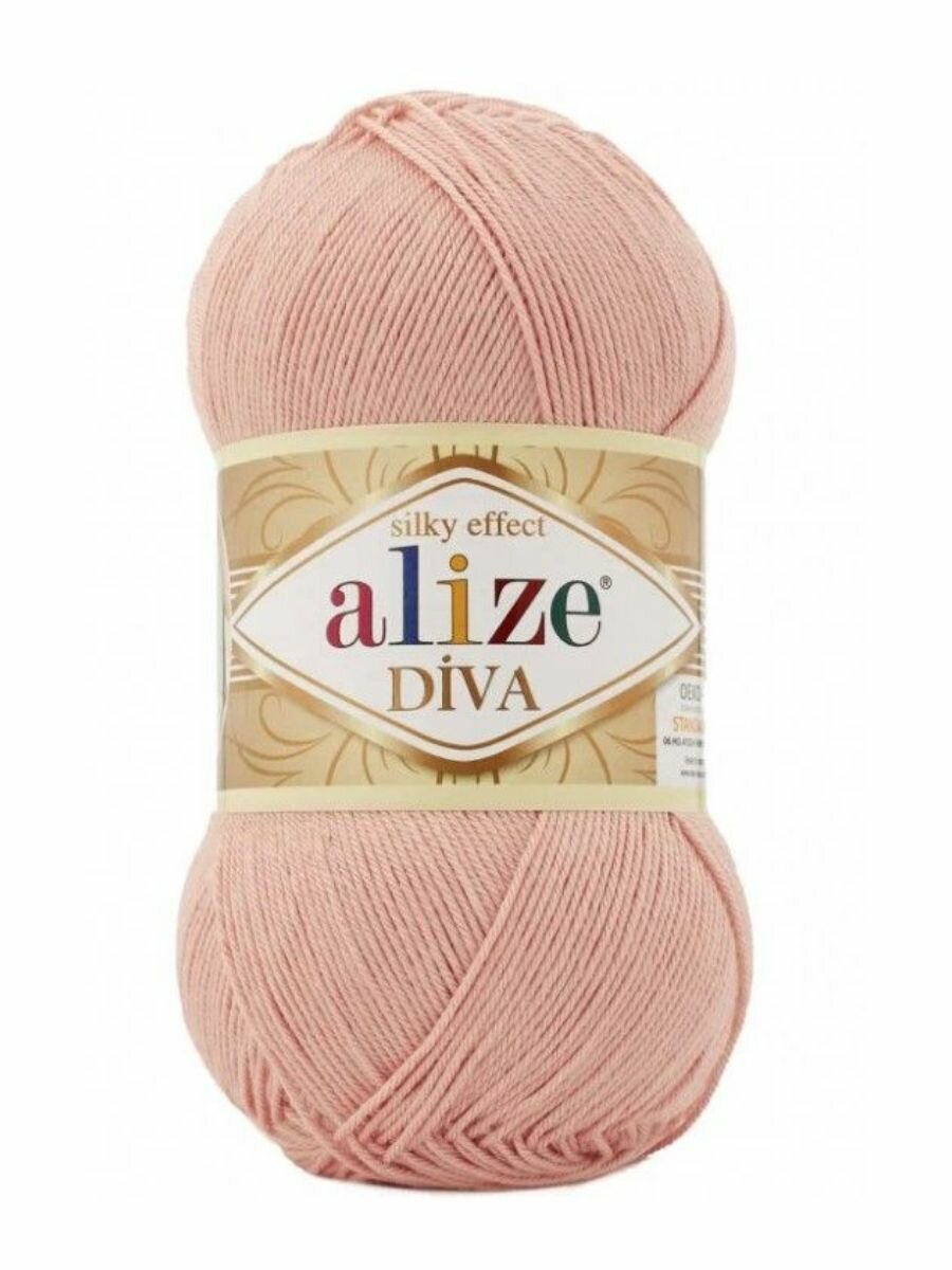 Пряжа Alize Diva - 1 шт, 145 св.персик, 350м/100г, 100% микрофибра акрил /Ализе Дива/ 315 ₽