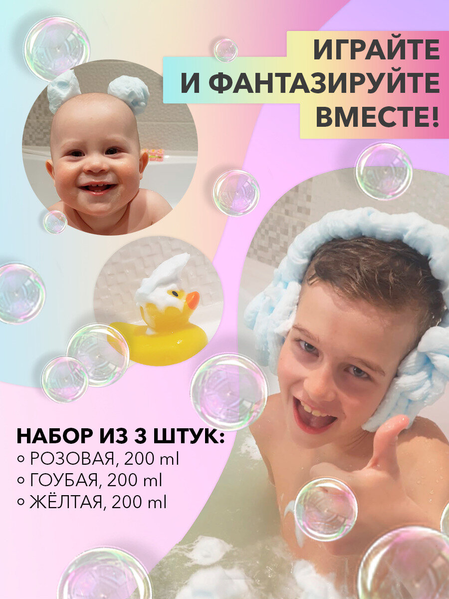 | Комплектация | три баллона по 200 мл мусс пены розовая голубая и желтая для купания |
