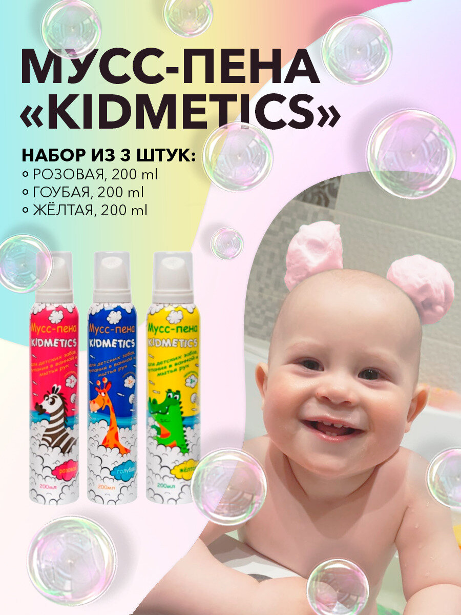 KIDMETICS Пенка мусс для купания детская цветная, пена для ванны, 3 шт информация: