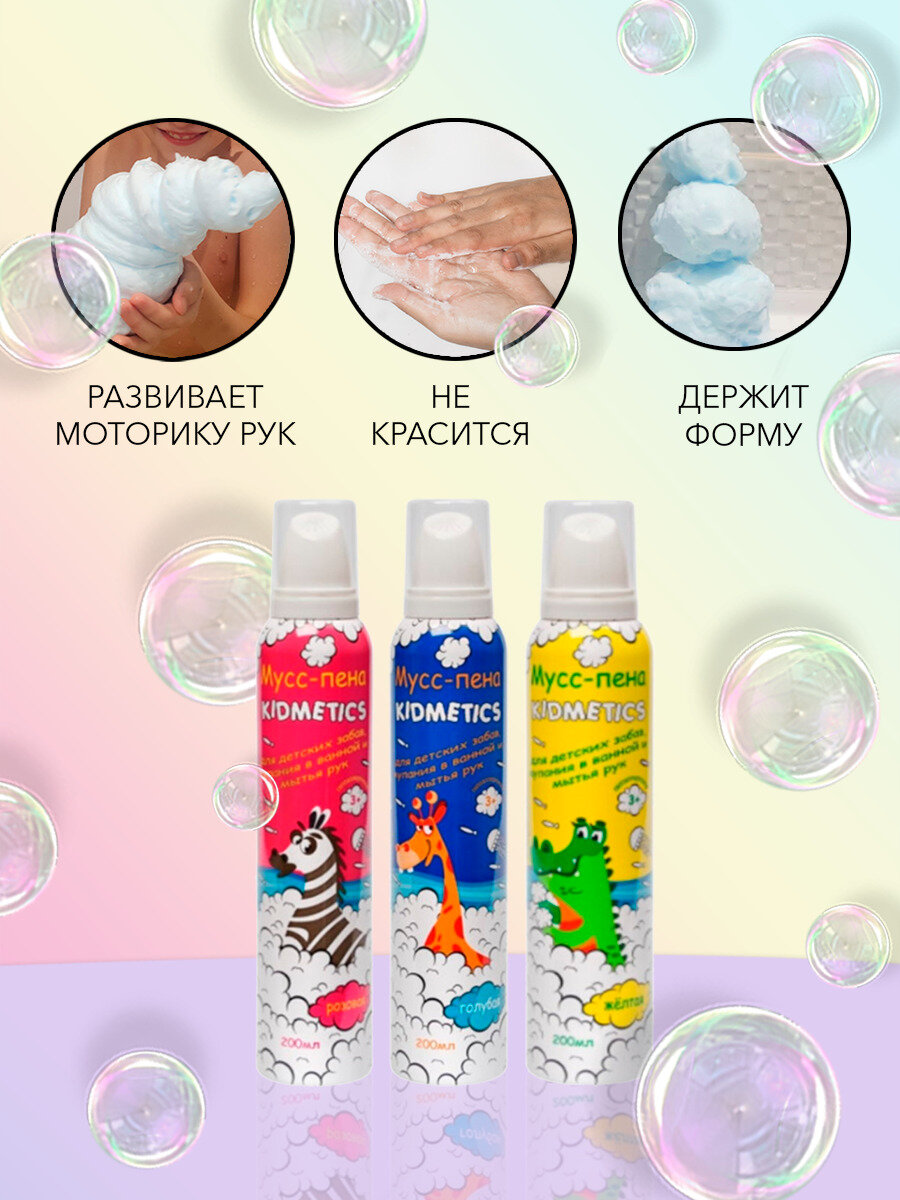 10 цен на KIDMETICS Пенка мусс для купания детская цветная, пена для ванны, 3 шт
