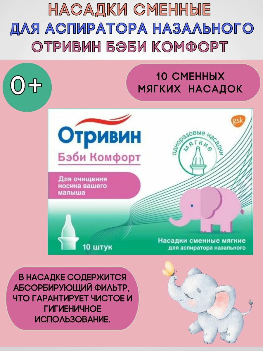 | Комплектация | Hасадки cменные для назального аспиратора Отривин Бэби комфорт- 1 уп. по 10 штук в уп |