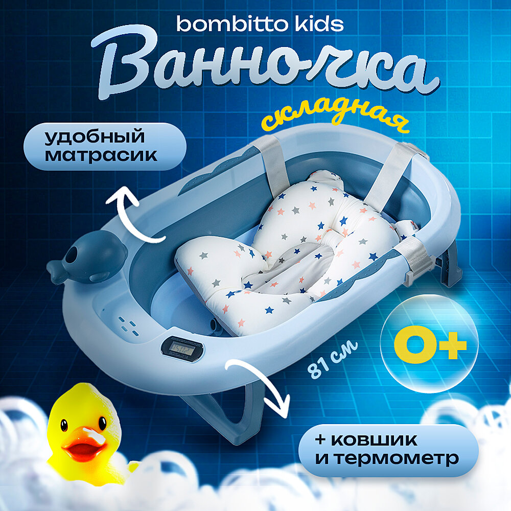 Ванночка Bombitto Kids, складная, для купания новорожденных с термометром и матрасом 2 990 ₽