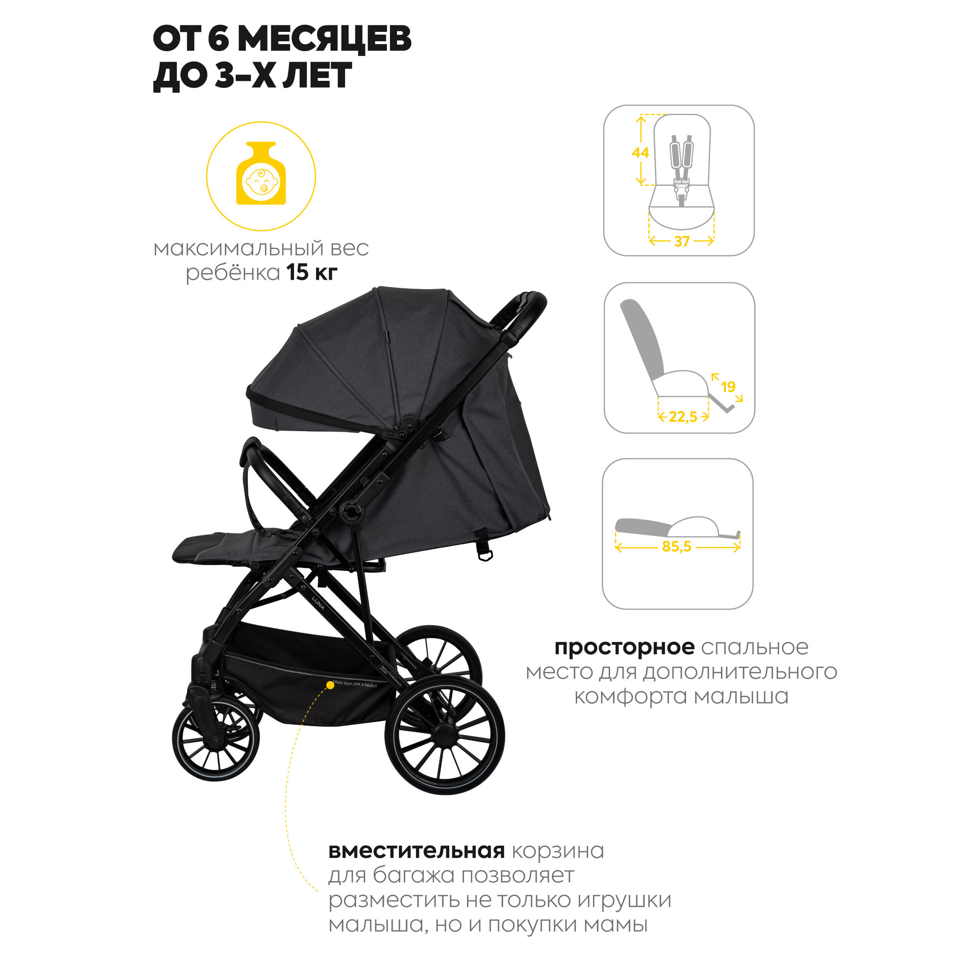 Коляска прогулочная детская Jovola Luna, всесезонная, с перекидной ручкой, темно-серый информация: