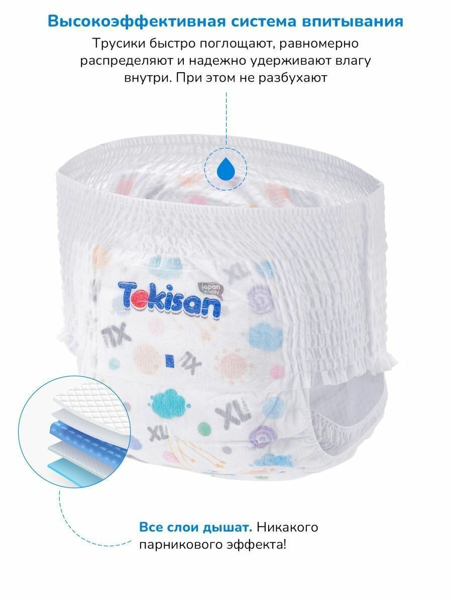 Подгузники трусики детские Tokisan для малышей 8-13 кг, размер 4 / L, 44 шт, дневные, ночные, японская технология информация: