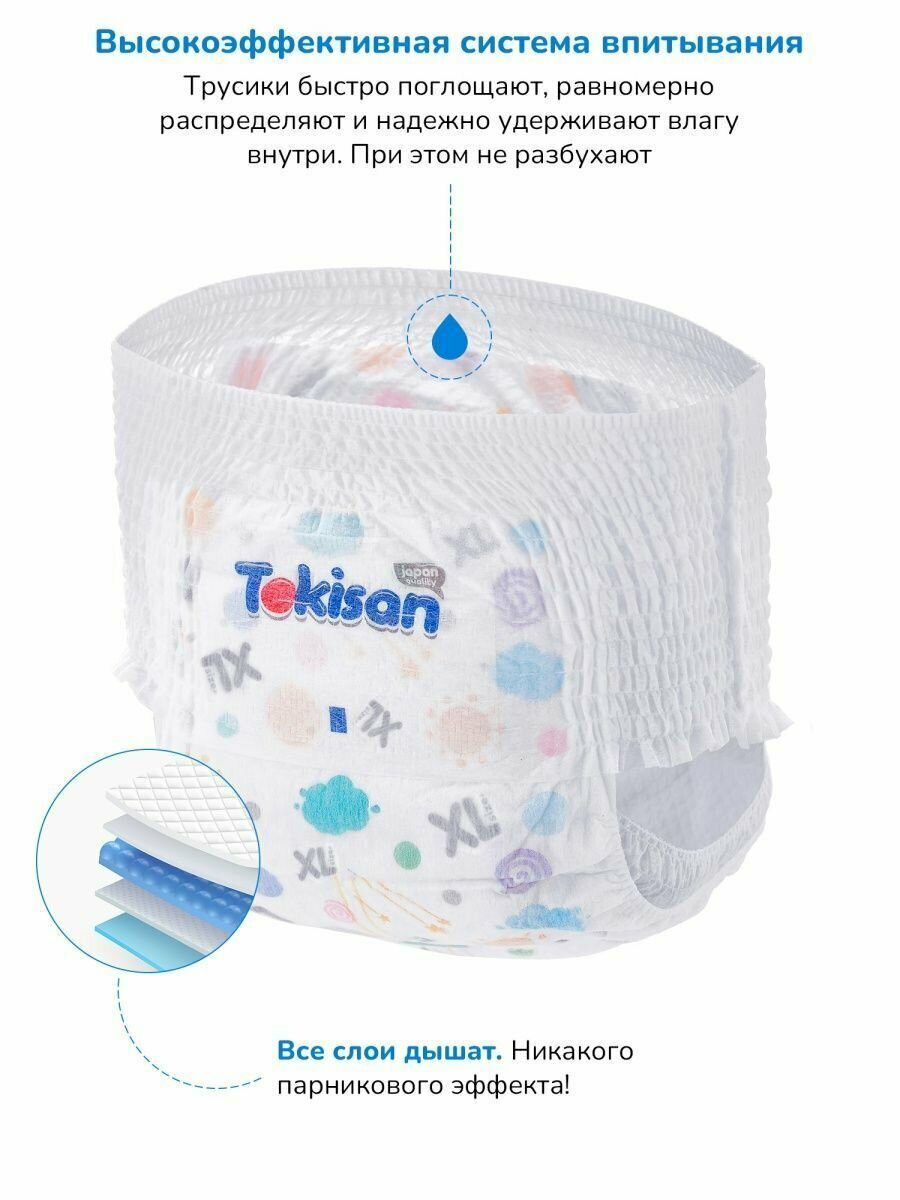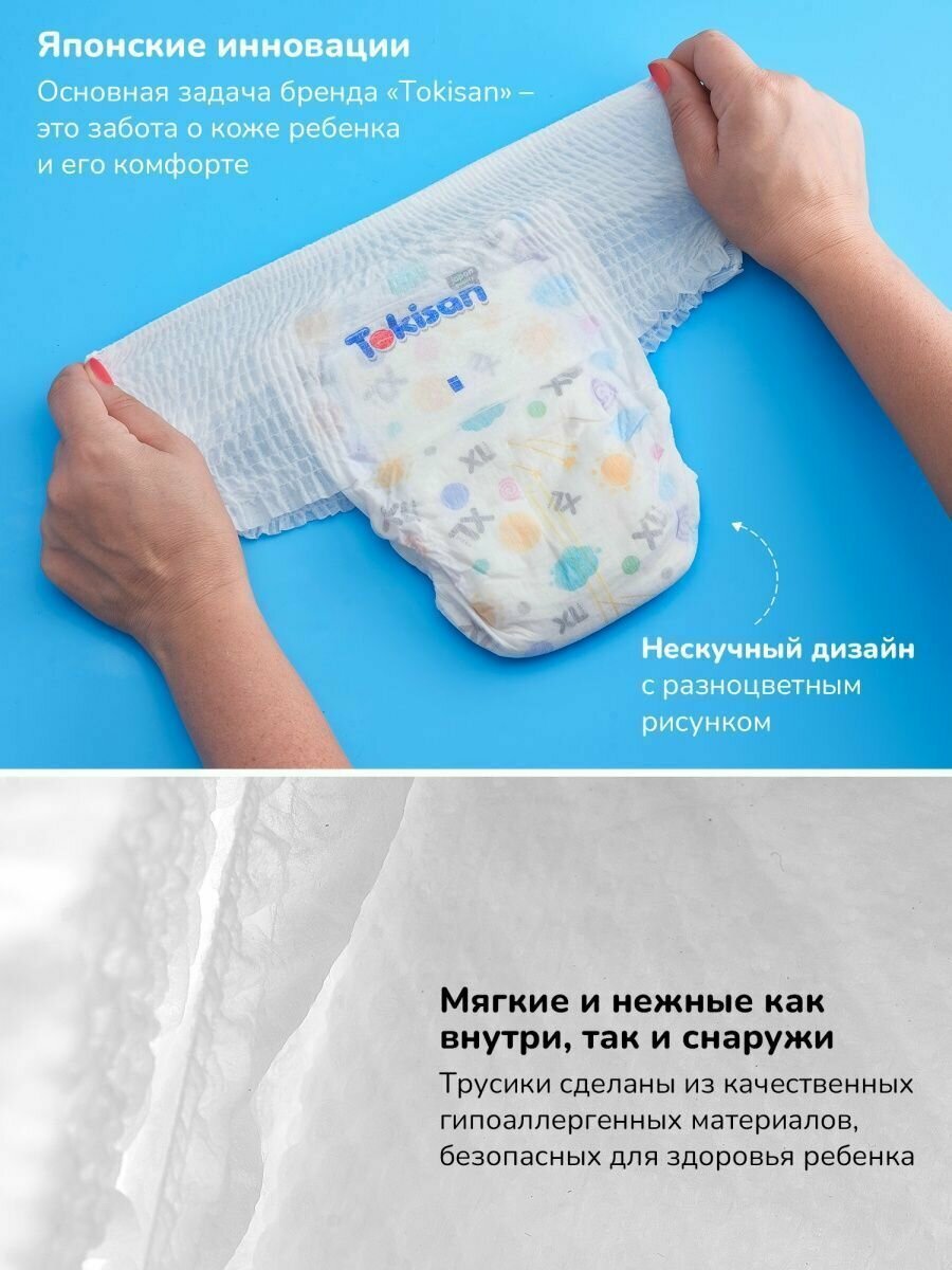 Подгузники трусики детские Tokisan размер 6 / XXL, 28 шт для мальчиков и девочек, эко памперсы дневные / ночные одноразовые, гипоаллергенные, ультратонкие, японская технология, комплект 5 уп информация: