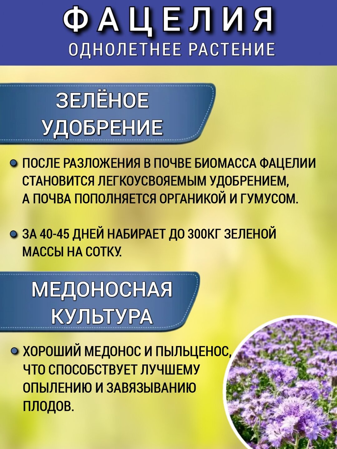 Отзывы на Семена сидератов Агроуспех Фацелия, зеленое удобрение, медонос 0,5 кг,