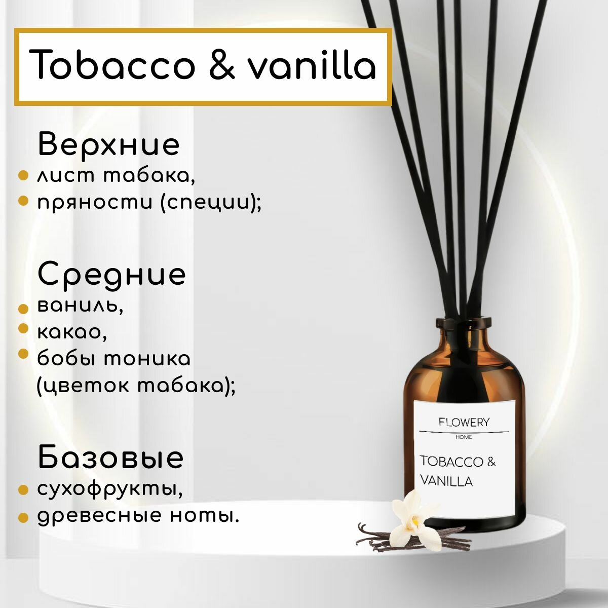 Отзывы на Ароматический диффузор для дома с палочками FLOWERY Tobacco & vanilla 50 мл
