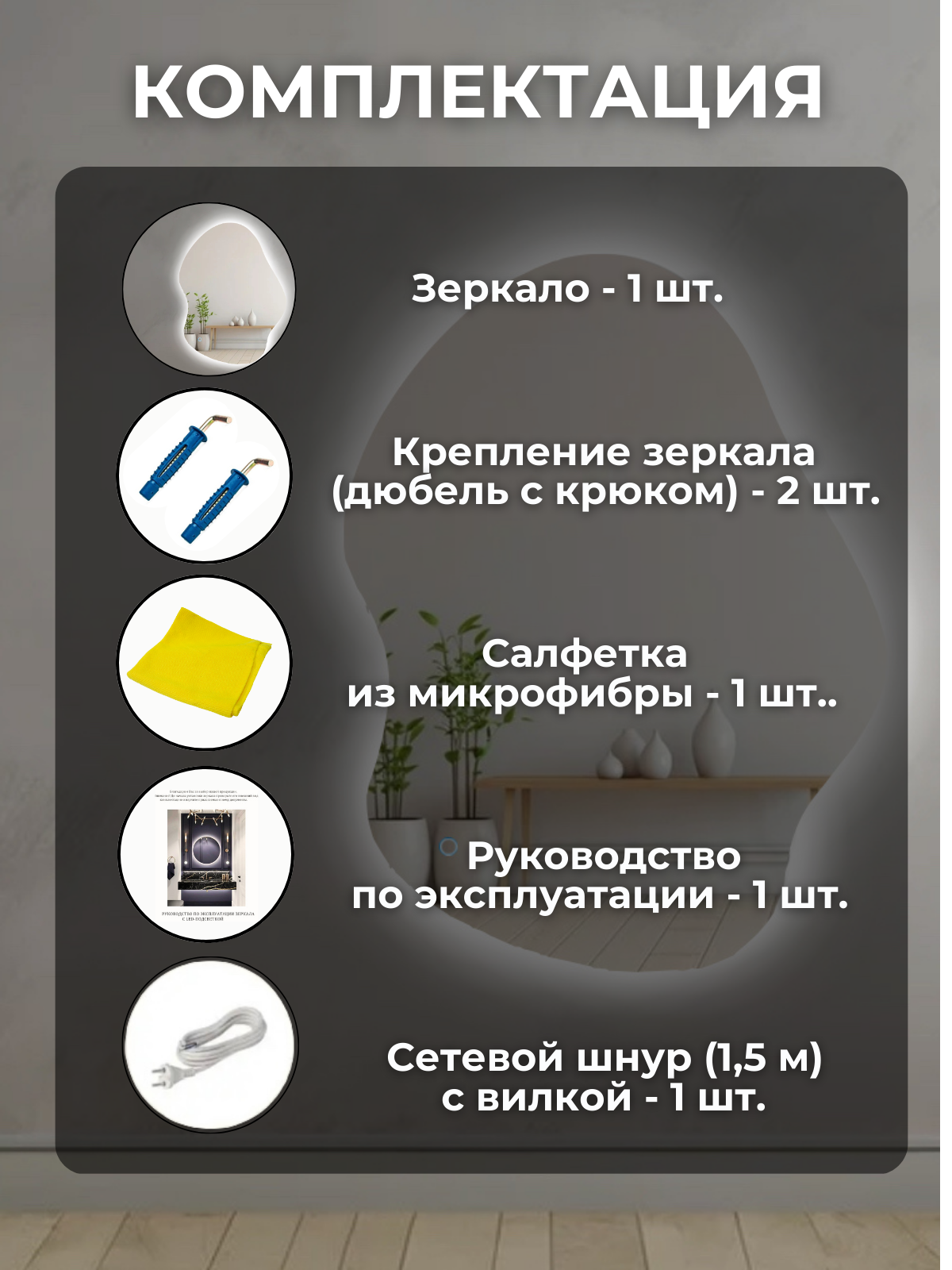 Настенное зеркало фигурное(облако), сенсорное с подсветкой 70 на 90 см. информация: