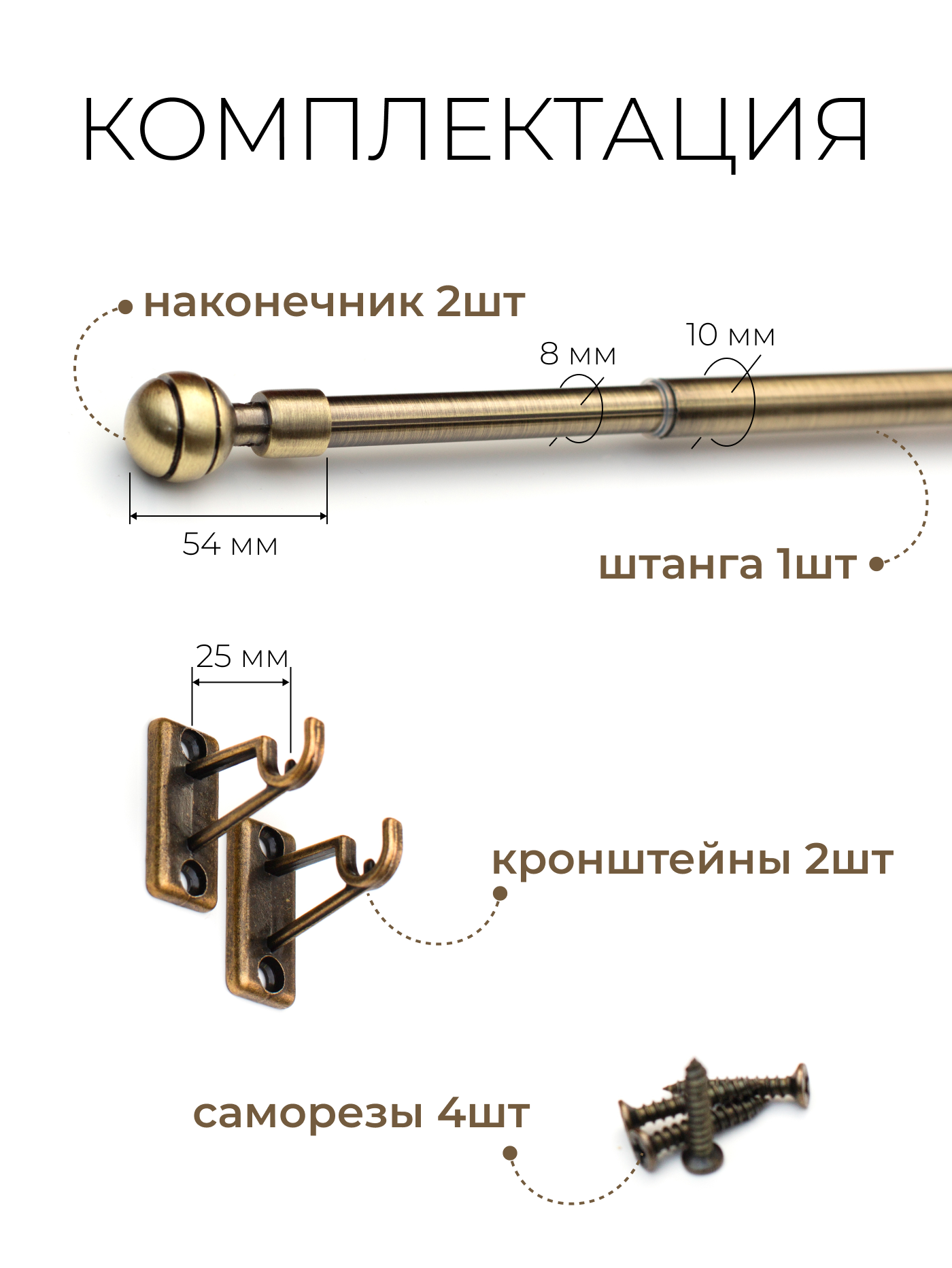 Мини карниз для штор "Кафе" 78-120 см, антик, д. 10 мм