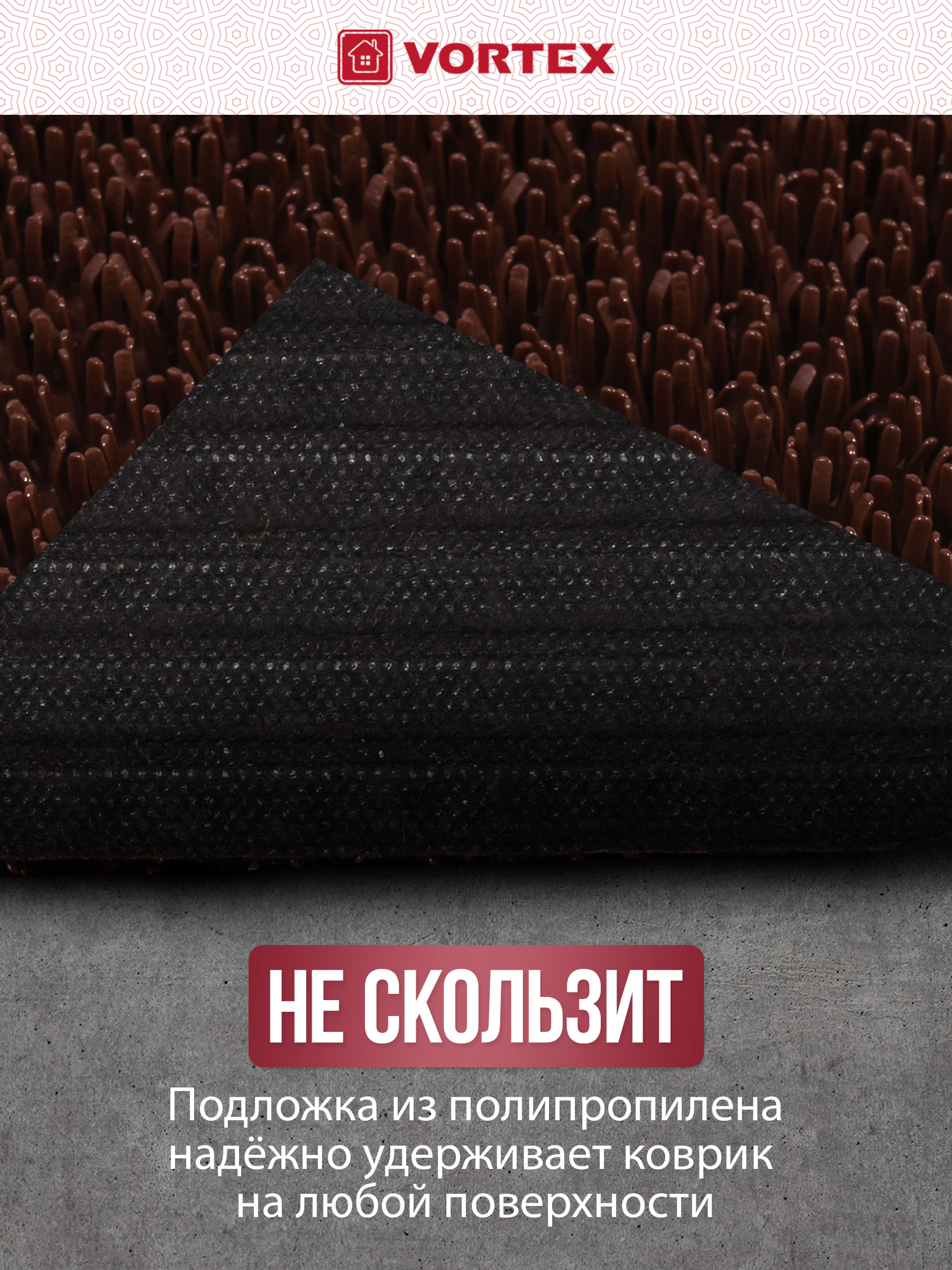 Коврик 60*90 см травка на противоскользящей основе в прихожую/противоскользящий/от грязи/снега темно-коричневый VORTEX информация:
