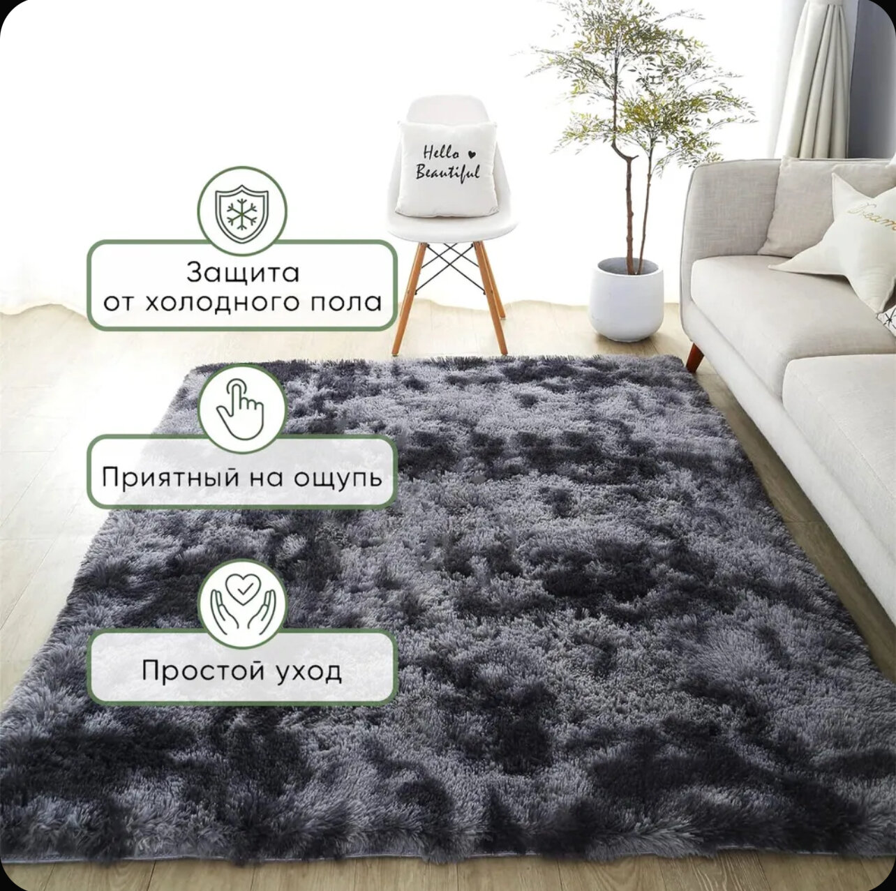 Отзывы на Ковер на пол с длинным ворсом меховой 200х140 см, темно-серый, мягкий, пушистый, антискользящий, в гостиную, спальню