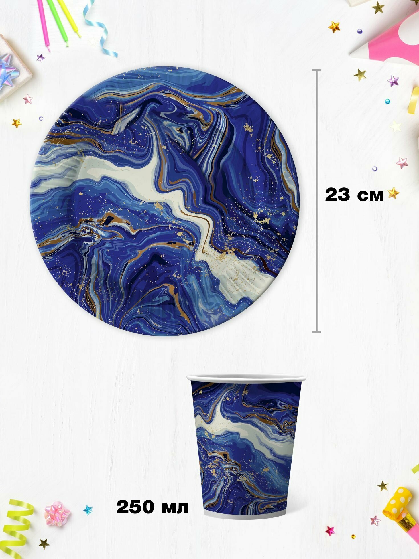 Набор бумажной одноразовой посуды для праздника ND Play / Смола синяя (тарелка 23 см, стакан, по 12 шт.)