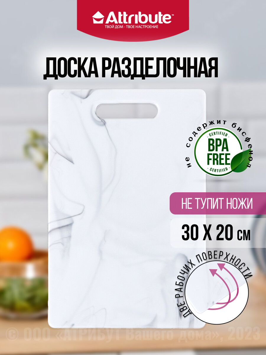 Разделочная доска ATTRIBUTE CUT.BOAR MARBLE WHITE, двухсторонняя, 30x20 см информация: