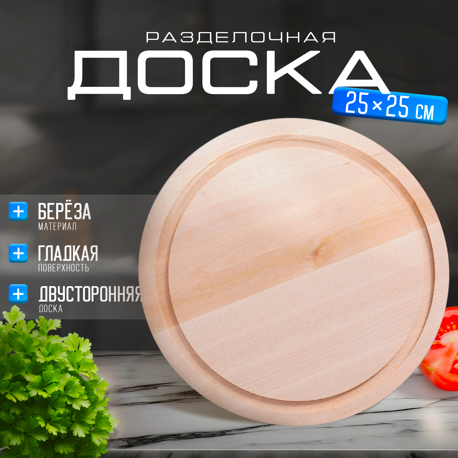 | Подробная комплектация | Доска разделочная круглая "Фортуна", 25x1,8 см, береза |